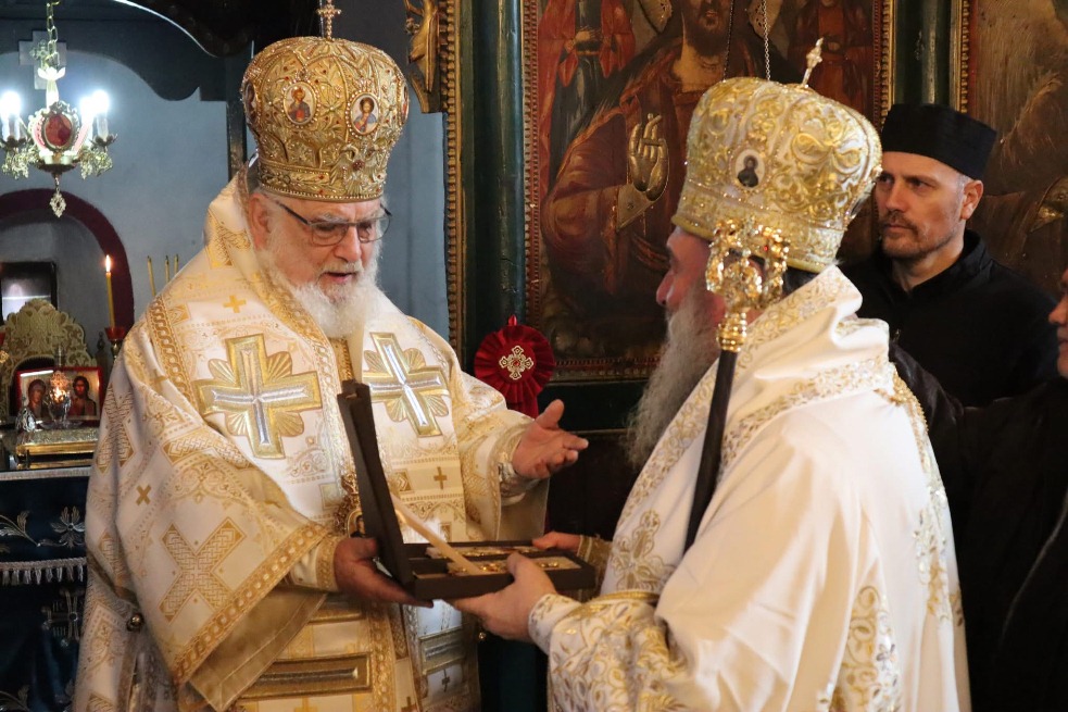 Пред почетокот на Литургијата на епископот г. Марко од името на монаштвото и свештенството на богомспасуваната Делчевско-каменичка епархија му беше доделен архиерејски жезол.
